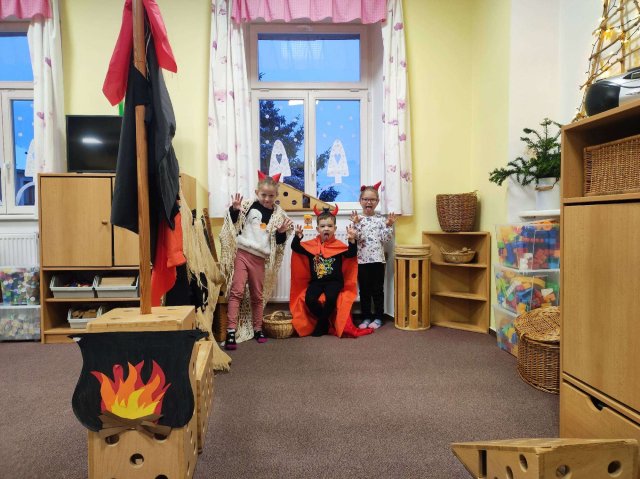 Prosinec byl plný kouzelné atmosféry, pohádek a těšení se na Vánoce. Děti si užily čertovský týden, kdy jsme si postavili peklo, povídali si o čertících, četli pohádky, zpívali písničky a čertíky si také vyráběly i kreslily.