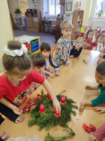 Následovalo povídání o svatém Mikuláši, čertech a andělech. Děti se seznamovaly s mikulášskými tradicemi prostřednictvím her, tvoření i hudebních činností a na konci týdne se těchto bytostí také dočkaly. Závěr měsíce patřil adventu a Vánocům. Společně jsme si ozdobili stromeček, vytvořili adventní věnec, pekli perníčky, zpívali koledy a připravovali se na besídku. Nechyběla ani radost z dárků, které dětem přinesl Ježíšek. Prosinec byl krásným a radostným zakončením roku. 🎄✨
