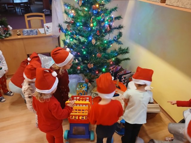 Po svačince jsme okna nezapomněli otevřít a vydali jsme se Ježíška vyhlížet oknem na zahrádku. Bohužel ho nikdo nezahlédl, ale všichni dobře slyšeli to krásné vánoční cinkání. S napětím jsme pootevřeli dveře a …