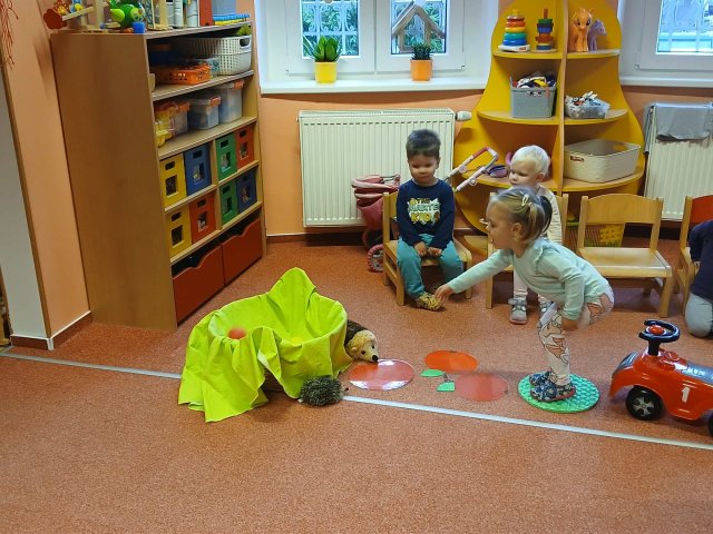 překážkovou dráhu a společně s ježečky poznávaly a třídily barvy. Tvořily, cvičily, stavěly a vše si náramně užívaly.