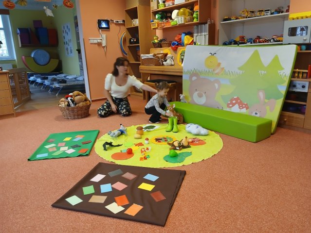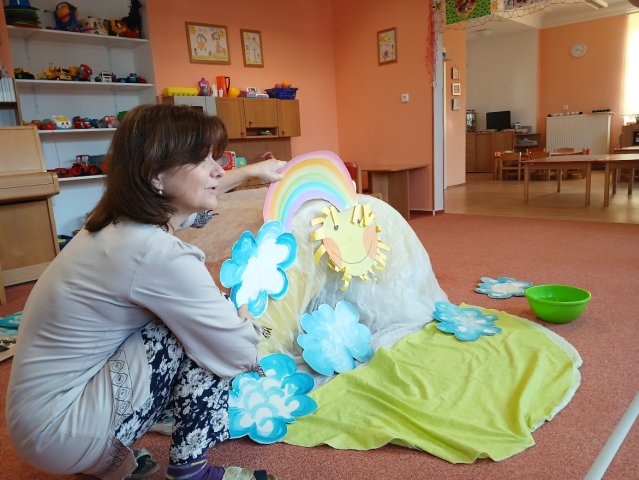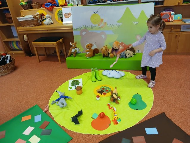 spoustu barev a my jsme si je dokázali užít při hrách, cvičení i tvoření. Vítr nám přivál hustou mlhu, do které jsme se my i zvířátka nadšeně halili. Veliké mraky i dešťové kapičky, které nás rozezpívaly a vesele roztančily.