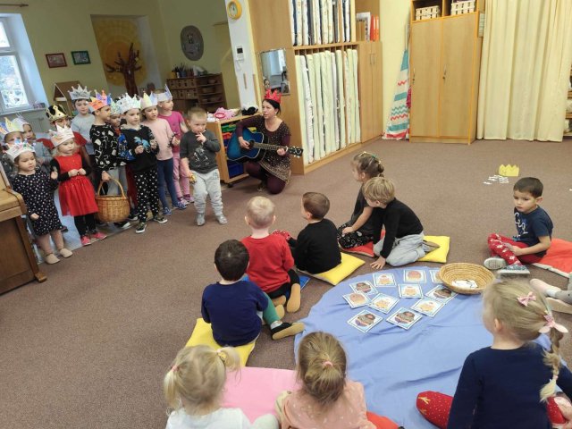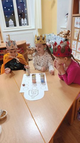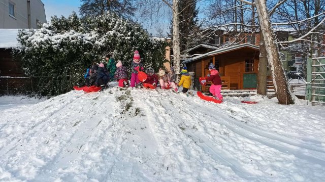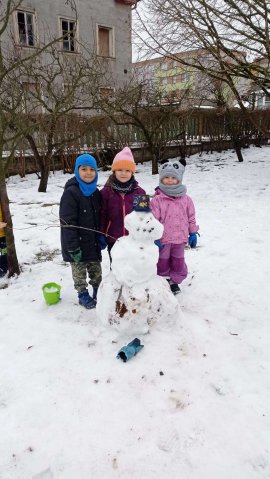 Děti se naučily písničku ,,My tři králové", se kterou vyrazily koledovat po školce a udělaly tak kamarádům a personálu MŠ radost. Tento měsíc si děti užívaly sněhové nadílky. Společně si hrály ve sněhu, stavěly sněhuláky a bobovaly.