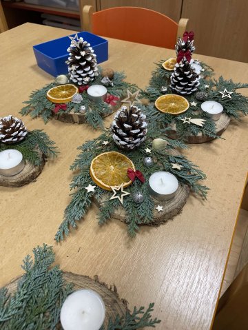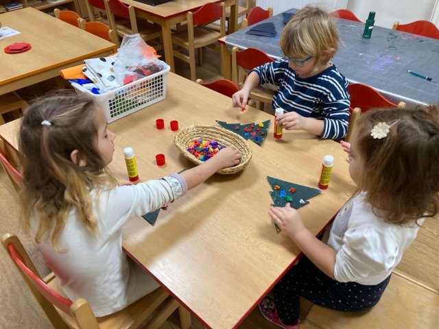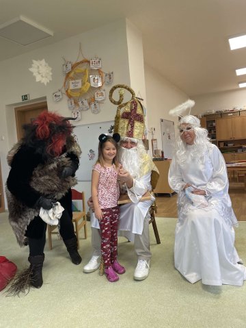 V prosinci jsme si společně užívali vánoční atmosféru. Vyráběli jsme přáníčka a dárečky pro rodiče, zdobili třídu a stromeček, upekli cukroví, které jsme na besídce ochutnali. Přisel se za námi podívat Mikuláš, čert a anděl. Ježíšek nám přinesl dárečky, které jsme si dětmi rozbalili.