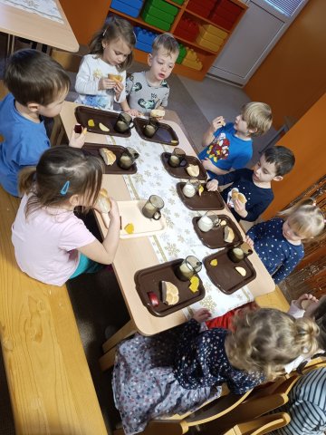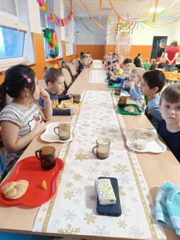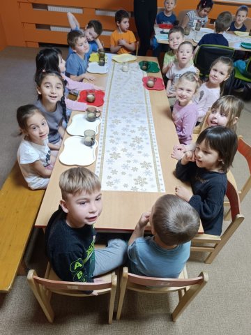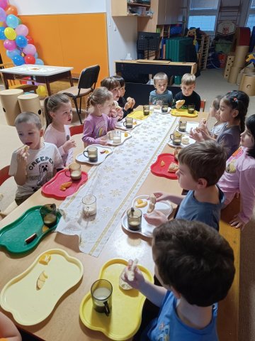 Další narozeninový den jsme si s dětmi uspořádali společnou svačinku v naší tělocvičně. Sešli jsme se celá školka (Čtyřlístek, Houbička, Jahůdka i Borůvka), společně jsme se najedli a společně si to užili.