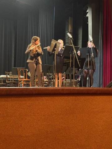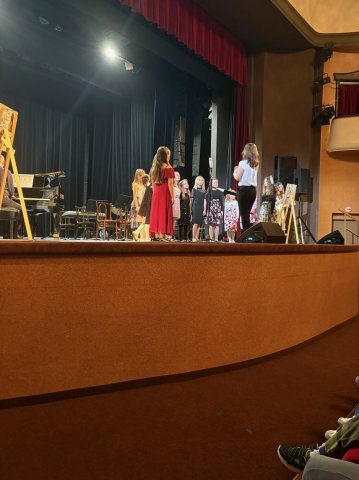 Dnes jsme s předškolními dětmi zavítali do divadla, kde se konal koncert dětí ZUŠ. Poslechli jsme si různé hudební nástroje, zpěváky a zpěvačky nebo sledovali malířky při kresbě. Děti si koncert moc užily.