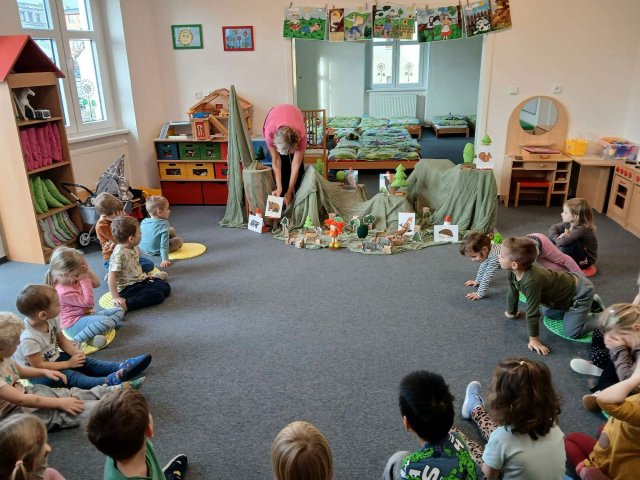 V měsíci listopadu nás provázela pohádka O ČERVENÉ KARKULCE, kterou si děti vyslechly v různých úpravách... rýmovanou, vyprávěnou, hranou i v úpravě muzikálové, na kterou si děti zatančily.